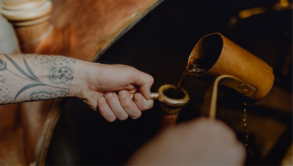 Für das Bamberger Braunbier darf die Maische wie ein Teig sorgsam im Maischbottich gehen. So lösen sich intensive Aromen, die direkt in den Sud übergehen und dem Braunbier seinen vollen Geschmack verleihen.