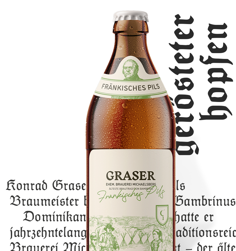 Das Fränkische Pils gilt als Urahn der Pilsbiere. Der Hopfen für das würzige Helle wird vor dem Brauvorgang auf dem heißen Boden der kupfernen Sudpfanne geröstet. Röstaromen gepaart mit einer ausgeprägt fruchtigen Note.